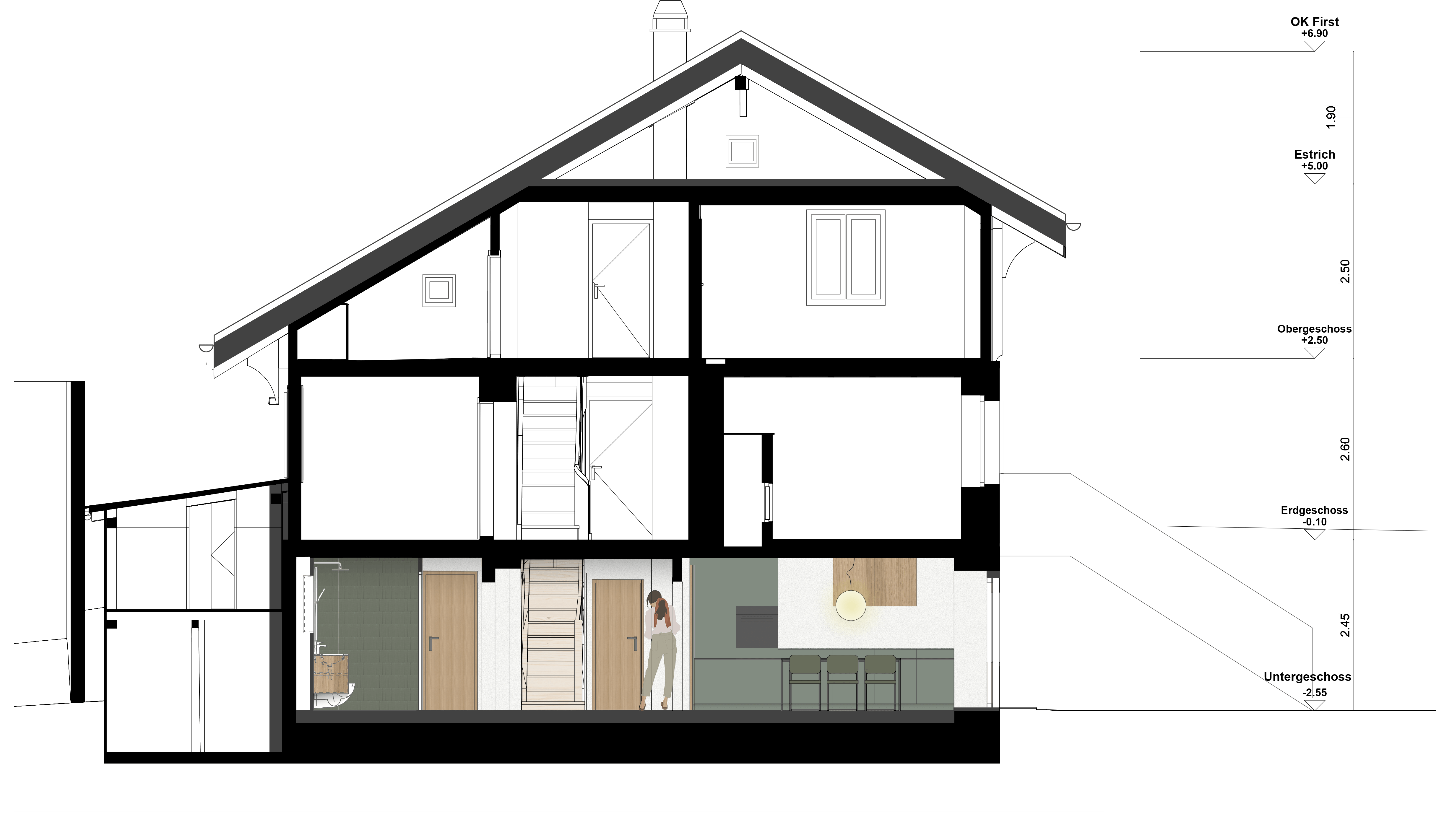 Im Zuge des Umbaus wurden auch energetische Verbesserungen umgesetzt: Neue Fenster, eine moderne Pelletheizung mit Fussbodenheizung und eine optimierte Dachisolation sorgen für zeitgemässen Wohnkomfort und Nachhaltigkeit.