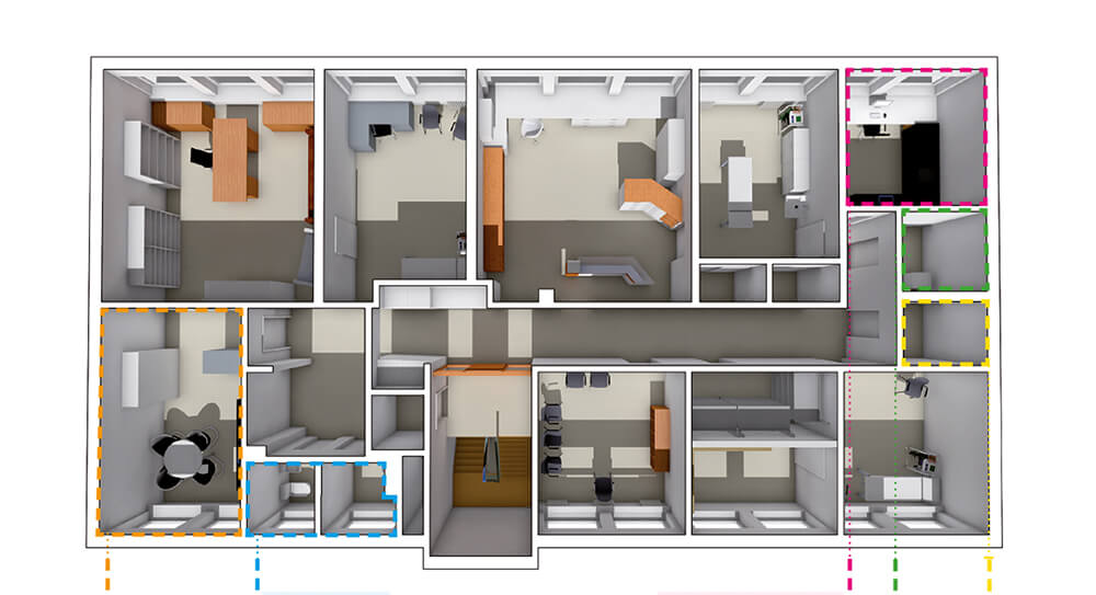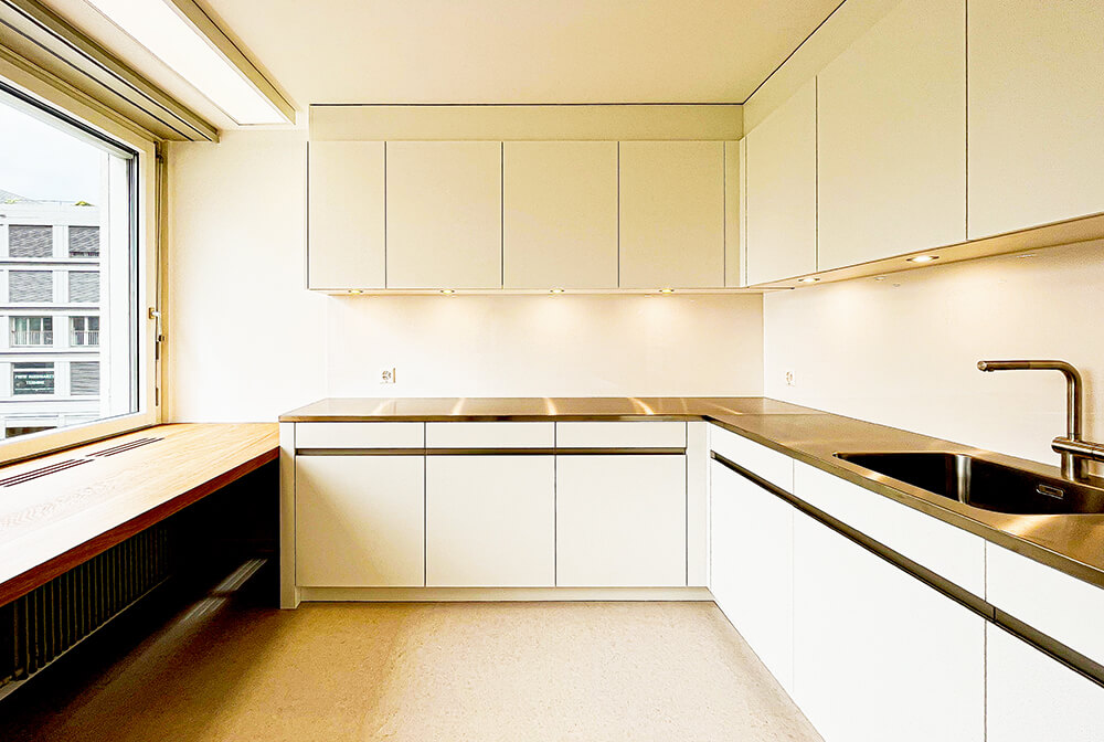 In nur drei Wochen Bauzeit wurde die Laborküche komplett erneuert, Bodenbeläge, Nasszellen neu installiert und der Mitarbeiterbereich neu gestaltet. Dank des gut organisierten Bauablaufs und der Teamarbeit aller Beteiligten konnte der Betrieb nach den drei Wochen reibungsloser Bauzeit wieder wie gewohnt aufgenommen werden.