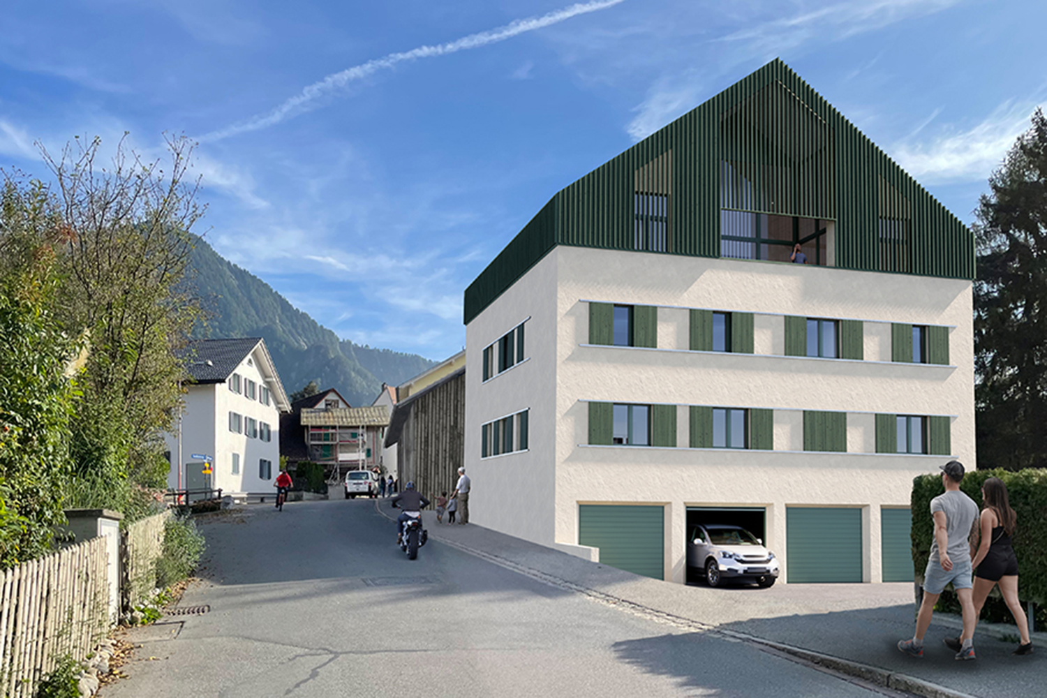 Von der städtebaulichen Eingliederung in den Dorfkern, über die architektonische Gestaltung und die Innenarchitektur entsteht ein stimmiges Mehrfamilienhaus aus einer Hand.