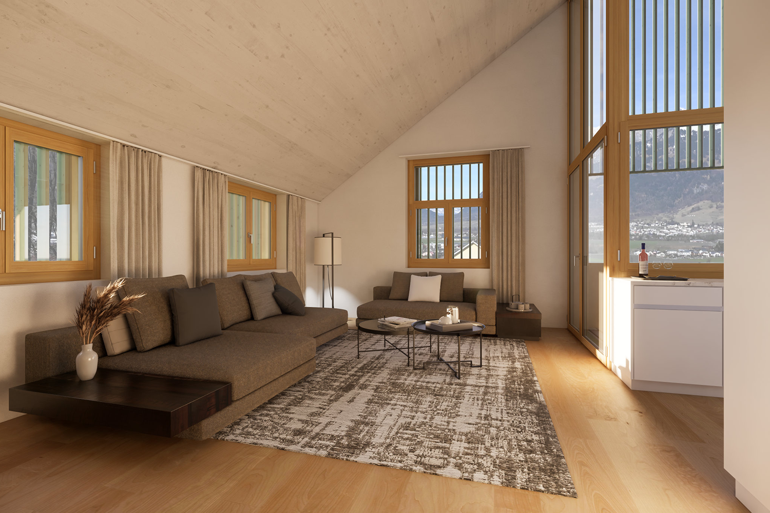 Jede Wohnung verfügt jeweils über einen privaten Balkon nach Süden mit Aussicht auf den Calanda oder eine geschützte Loggia mit fantastischem Panorama über das Bündner Rheintal. Eine innenliegende Garage, ein separates Kellerabteil, eine wohnungsinterne Waschküche, zwei Nasszellen wie auch eine durchdachte Küchenplanung runden das grosszügige Raumprogramm ab.
